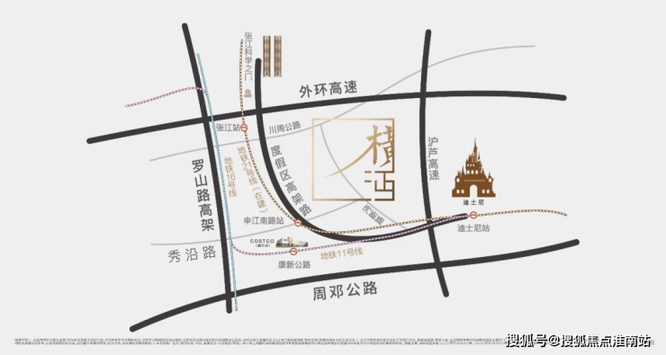 项目坐落于上海浦东外环线旁,占据张江科学城与迪士尼国际旅游度假区交汇的黄金地段,区域发展潜力巨大。项目设计巧妙融合东方禅意美学与国际知名IP元素,在提供舒适居住体验的同时,深度融入文化底蕴,助力城市焕新。项目距建设中的张江科学之门约4.8公里,至迪士尼乐园仅约2公里,显著的区位优势赋予其独特的市场吸引力。