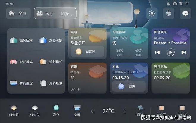 ▲华为鸿蒙智能家居中控系统示意