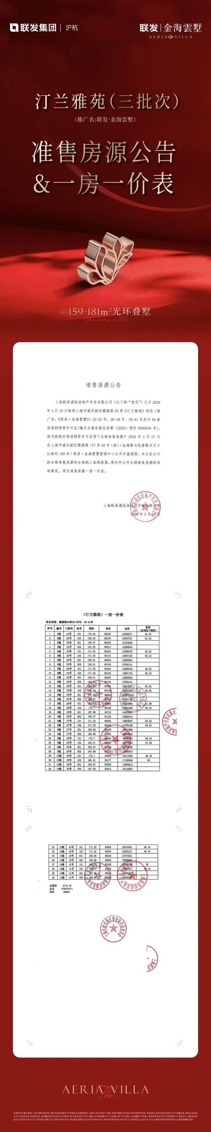 为保障购房者权益,规避非官方渠道误导,现将联发金海雲墅2026年4月9日最新官方信息公示如下,敬请认准: