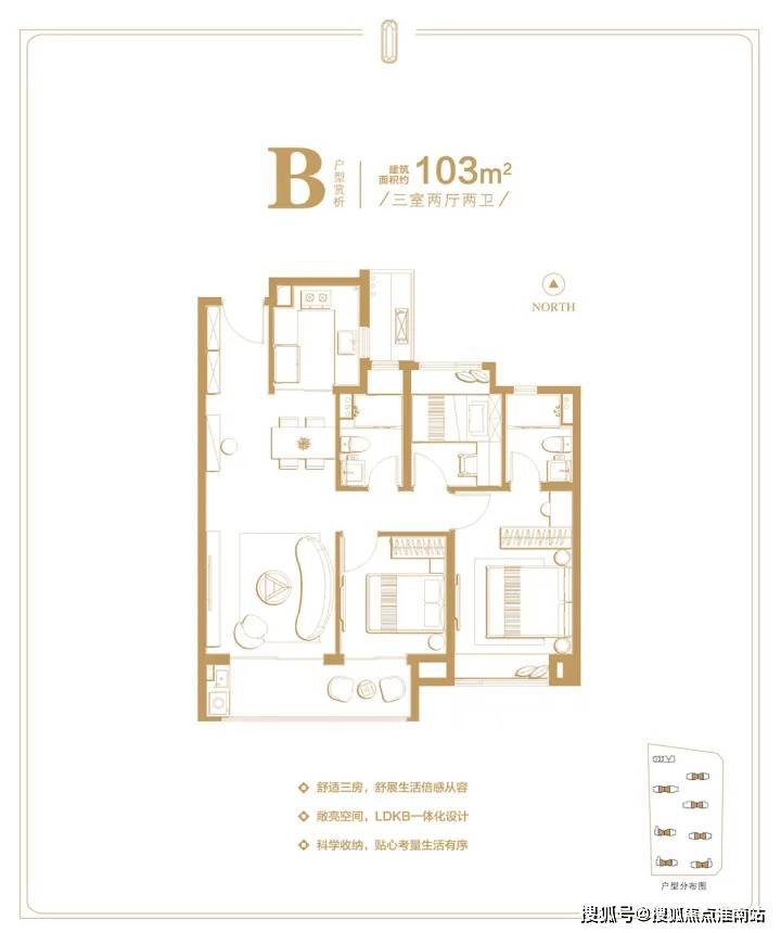建面约103㎡的三房两厅两卫