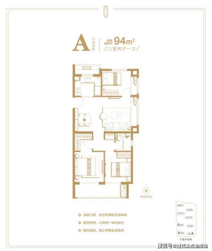 项目共计规划8栋14-18F高层住宅,规划可售住宅套数528套,主力建面约94-122㎡3房,功能齐全,足够匹配不同家庭结构的需求。