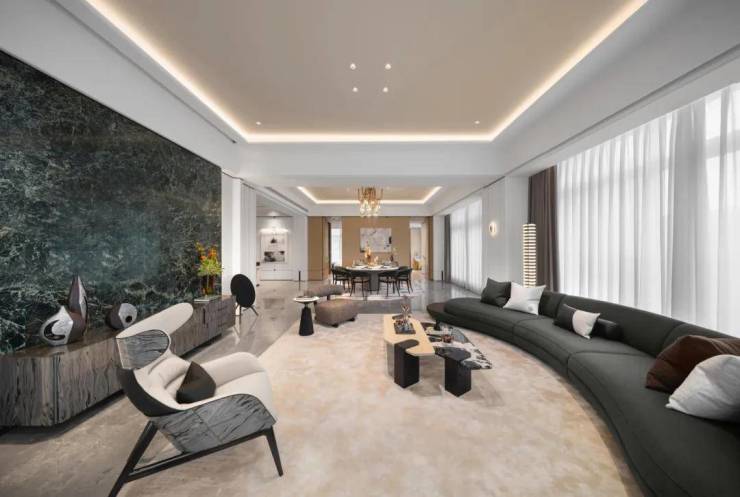 项目推出了建筑面积约460㎡【领潮】和410㎡【湾潮】两大户型,采用大面积装饰温润质朴的木饰面,挥毫泼墨的写意奢石,意境超凡的玉纹绿大理石,沉稳矜贵的古铜拉丝金属线,共同烘托充满艺术真意的生活场境。