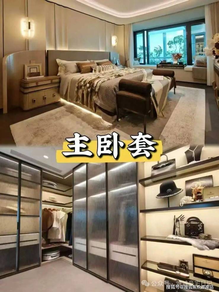 主卧大套房设计带超大主卫和独立衣帽空间,面积约50㎡,妥妥顶豪水平!