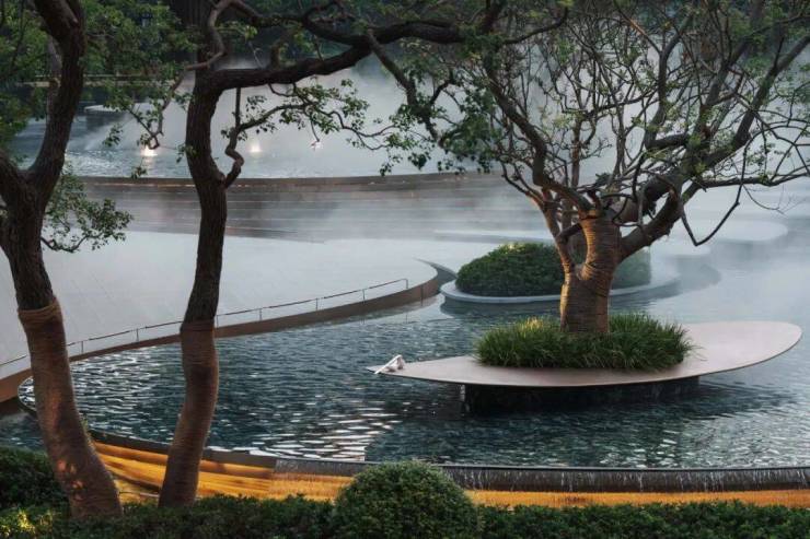 九园:潮汐花园(社区外围口袋花园)、浔湾秘境(会所式入户)、社交剧场、漫游森境、下沉会所、阅读花园、社交花园、自然博物馆等。