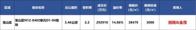 去年(12月30日),2024年第八批次土拍首日,招商&金茂以总价29.29亿元竞得宝山区N12-0402单元D1-04地块。