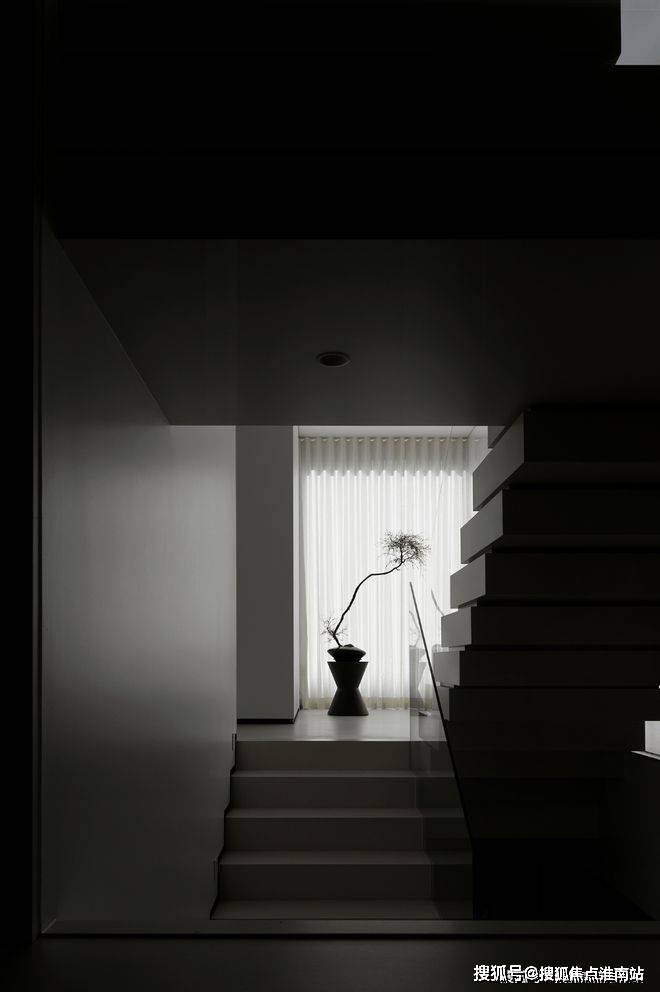 楼梯区完全被几何占据,自然光恰到好处的平衡,进一步呼应着空间的心境,衔接了生活和居所。