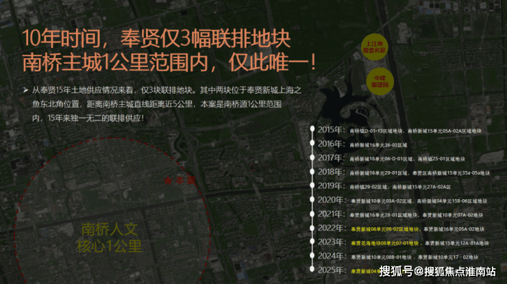 过去十年,全区出让的真正低密联排地块屈指可数,且绝大多数分布于距离传统主城核芯较远的上海之鱼板块。在南桥主城一公里的核芯范围内,可供开发此类产品的土地,几乎是一片空白。