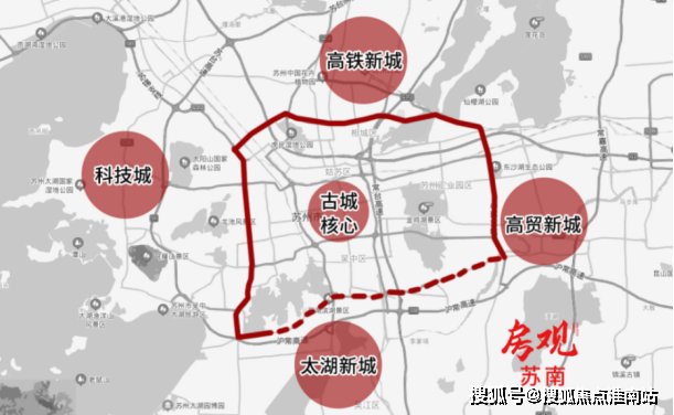 2012年,苏州首次提出“一核四城”战略布局,由此成为苏州城市发展和房地产开发的重要导向,形成苏州价值第二梯队的五大新城。