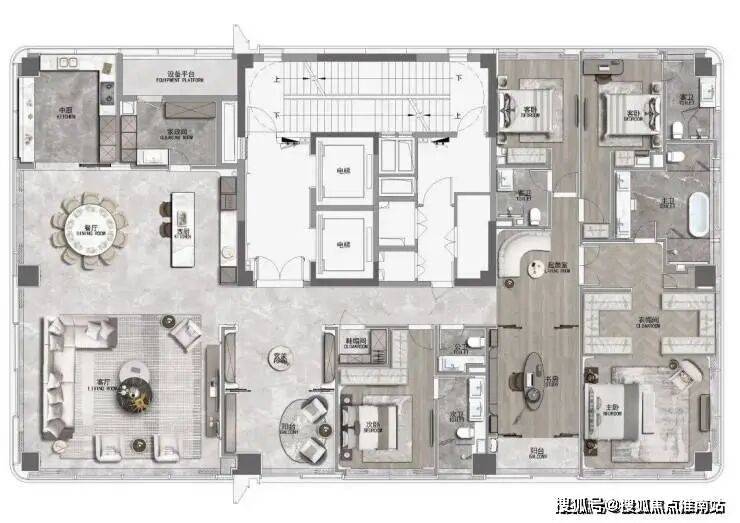 珍贵的土地,值得涵养高贵的生活。在建筑面积约410㎡样板中,大师设计精琢奢华的本象,在层高4米的朗阔场域中,打造270°巨幕观江视野,超大LDK家庭社交中心,为未来居者盛载流动且美好的生活情境。