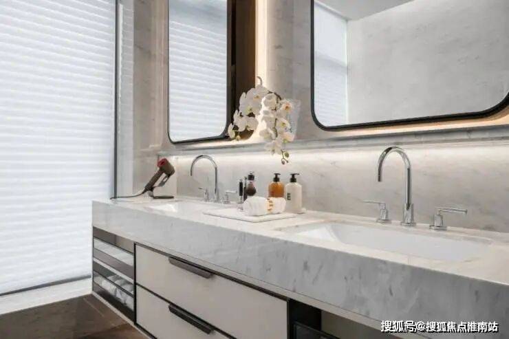 主卫选用劳芬、当代、卡德维等顶配装标,在2万+大平层中找不到第二个。并且御钱湾并不是为了堆配置,都是从健康出发,当代的黄铜龙头十年不锈,卡德维浴缸的抗菌釉面,不会发黄,是婴儿水中分娩浴缸。