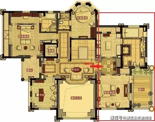 二楼,是主人居住区域,层高3.4米起(部分穹顶位置层高较高),共设计有三间套房,一间书房,二个大露台。
