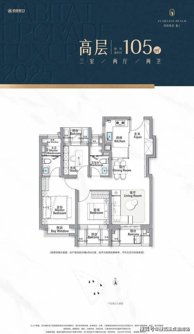 首先,是实用面积的跃升。建面约105㎡户型的三个阳台只算一半面积,花池不算面积,主卧自带非承重结构的飘窗,✅✅招商臻境售楼处电话:400-891-9910✅✅折算下来的空间是实打实的,远超市面上同面积段其他产品!