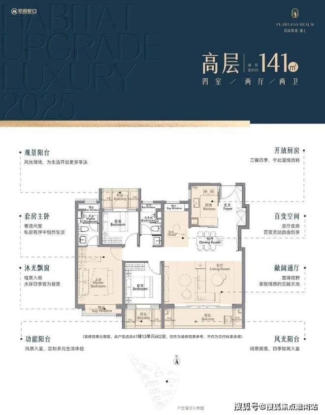 2、延伸空间拉满!主卧套房飘窗+步入式衣帽间+独立卫浴拥有2个飘窗,尊崇感与实用性拉满!三阳台+花池+4飘窗结构,有效延伸空间,✅✅招商臻境售楼处电话:400-891-9910✅✅实际使用空间更奢阔!