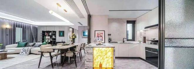创意展示空间处处展现了海派风韵,✅✅招商臻境售楼处电话:400-891-9910✅✅例如更耗时更费钱的带弧度的半圆形吊顶!以及厨房的三轨道移门的水波纹玻璃,更具奢华腔调!