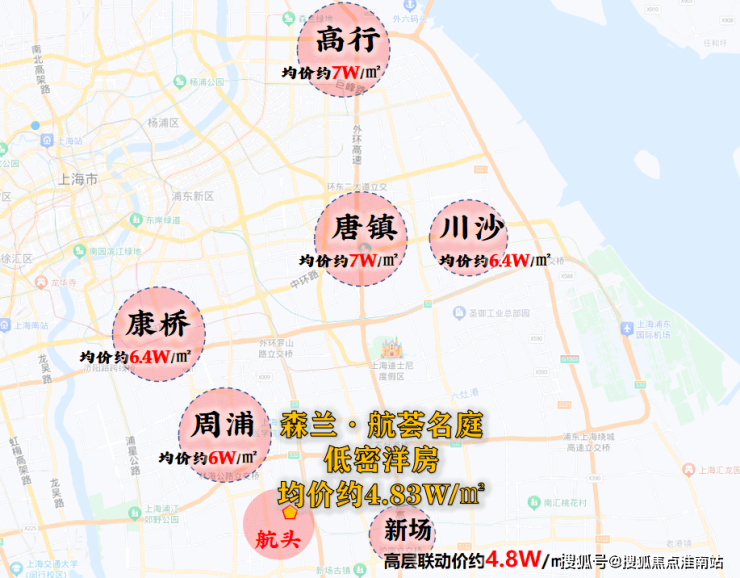 对于浦西来说“4”字头新盘不足为奇,可在浦东就显得尤为珍贵,板块均价基本需要6-7万/㎡左右,即便是同维度新场,高层产品的新房联动价都已经4.8万/㎡。