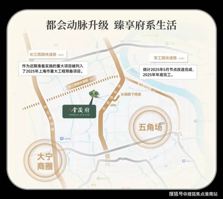 另一方面,军工路快速路新建工程预计今年年内完工(来源:上海发布),意味中环北抬今年将迈出重要一步,第二步长江西路快速路已被列入2025年上海市重大工程清单,预计即将开工——届时,江湾金茂府就将从“中环旁”升级为“中环内”!