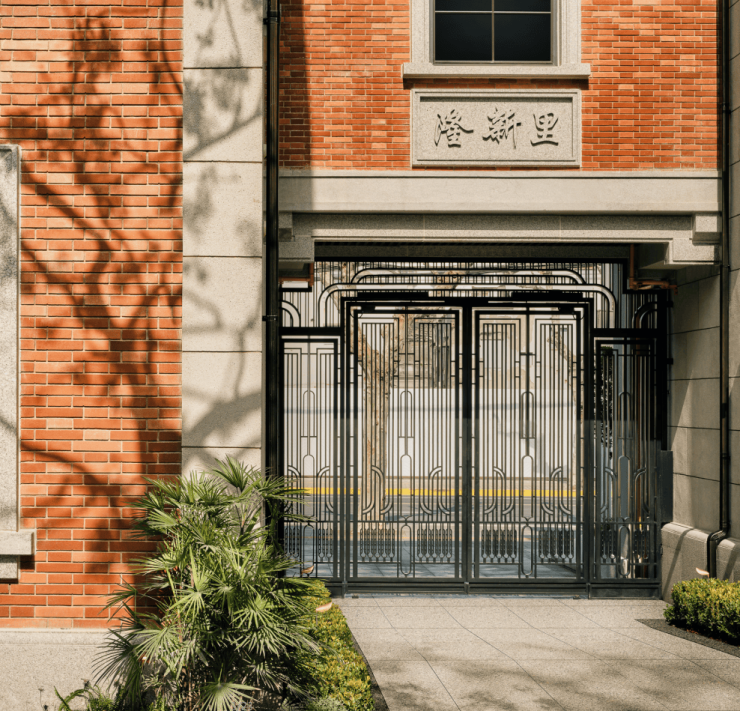 入口繁复的金属镂空大门搭配同源衡复街区式水刷石技艺,为杨浦滨江的街头增添了更多文艺与浪漫的气息。