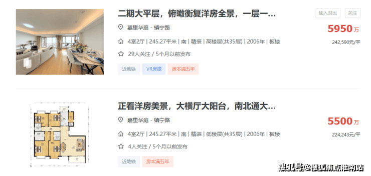 这个小区的挂牌均价不过15-16万/㎡,但高区能看低密洋房的房源挂牌价普遍超过20万/㎡,最高能超过24万/㎡。