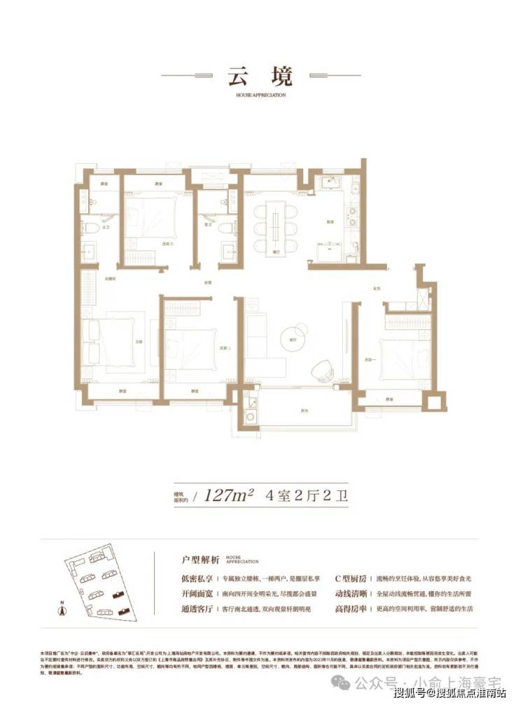 建筑约127㎡的「云境」空间内,四开间南向结合舒朗的方厅,大尺度的面宽让光赋予了生活更多的灵感。