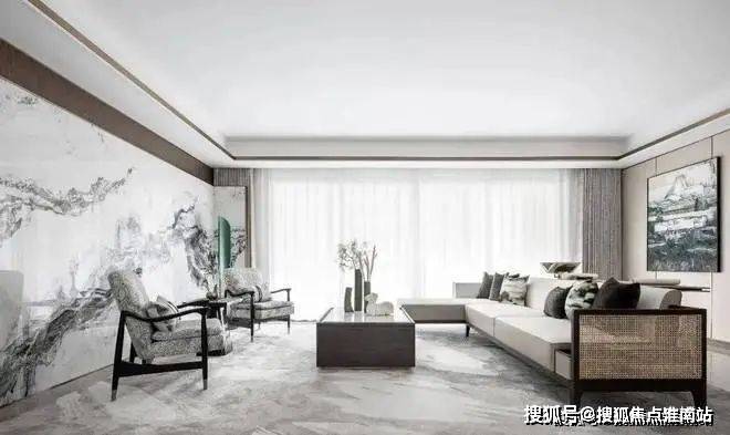 放眼整个客厅空间,并没有繁杂的元素点缀,甚至就连客厅格局也以开阔为主,恰恰迎合了中式水墨画的恬淡素雅之美。