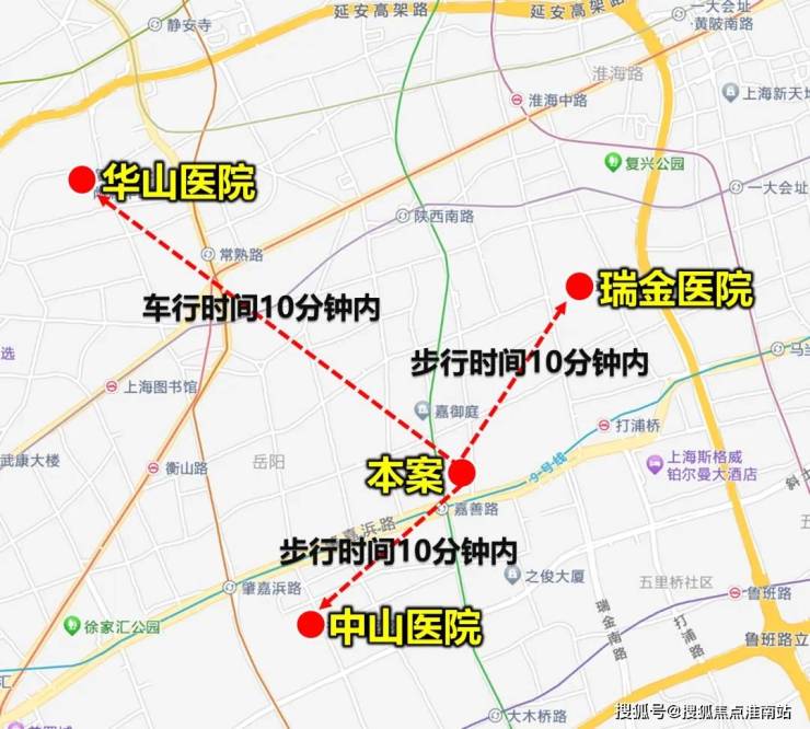 项目步行10分钟内可达瑞金医院、中山医院,车行10分钟内可达华山医院,这3个医院的名气和实力毋庸置疑。