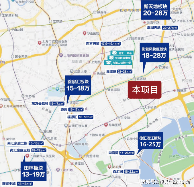 项目位于徐汇区建国西路板块,一边是老卢湾新黄浦,过了淮海路就是老静安。
