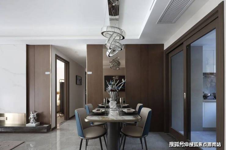 私密场域依旧保持静谧,黑白色基础上搭配了更多的色彩,例如深棕、浅紫等,艺术品的衬托深邃迷人,热络了家的氛围。