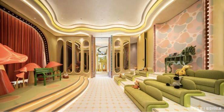 目前已呈现的四大主题架空层,如室内外联动童玩区,双层挑高约8米,内有剧场、儿童厨房、益智游戏、攀爬区、山丘滑梯等,外有飞船、峡谷滑梯等,这不比花钱的奈尔宝还要丰富精彩?