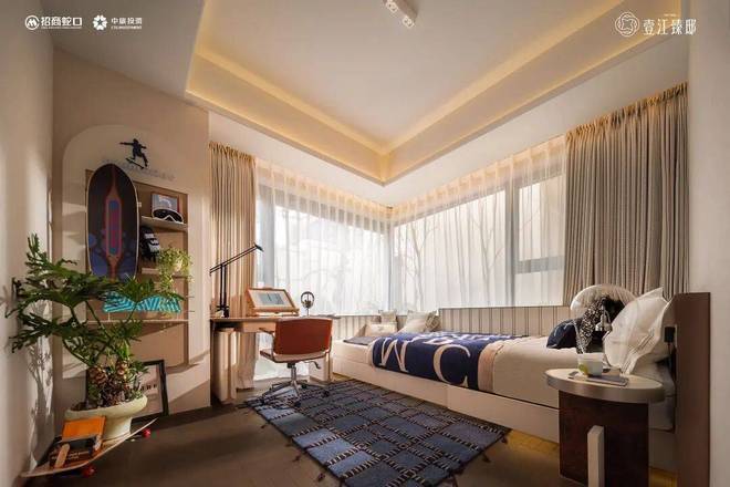 壹江臻邸官方售楼处电话:400-8818-994【预约☎】结合约270°转角飘窗增加的拓展空间后,即便容纳1.8米×2米标准床具与衣柜,剩余空间依旧非常大。