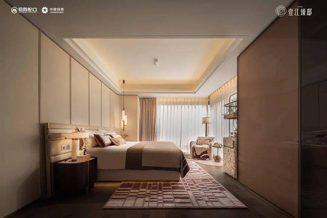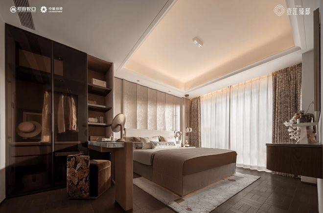 壹江臻邸官方售楼处电话:400-8818-994【预约☎】主卧套房的设计同样突破想象。整体面积约25㎡,更是在约270°转角飘窗的基础上,增设靠窗休闲沙发区,形成独立的“微型休憩系统”。