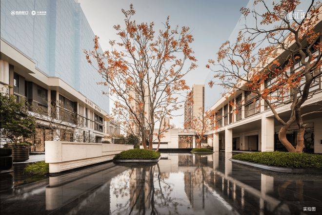 壹江臻邸官方售楼处电话:400-8818-994【预约☎】超千方镜面主题水院,时刻演绎自然与建筑的无界之美:澄澈镜面水面倒映建筑肌理与天光云影,搭配三株原生丛生乌桕的点缀,与回廊、浮岛相映成趣,营造出静谧雅致的亲水意境,这种沉浸式水景体验生活,在张江高端住区中尤为稀缺。