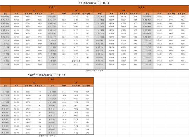 一房一价表