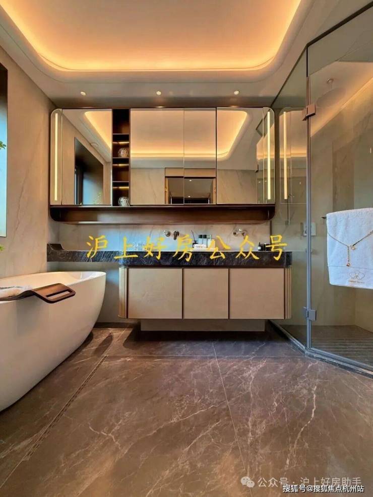 2层设置卧室空间,2个套房+1个类套房。主卧步入式衣帽间,双台盆加浴缸的设计,再加上一个观景阳台,奢阔尺度直逼250+㎡的大平层。