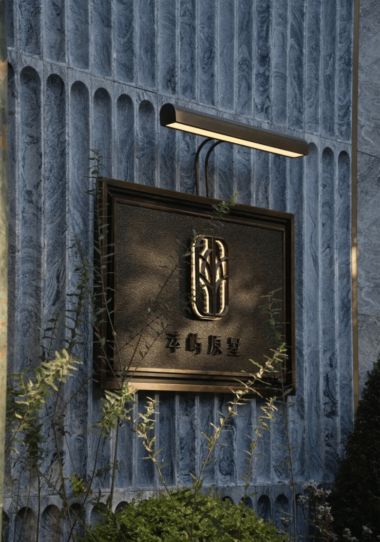 高达约5米的景墙采用维斯康白和范思哲黑奢石打造,天然深邃的纹理镌刻着门第的荣耀