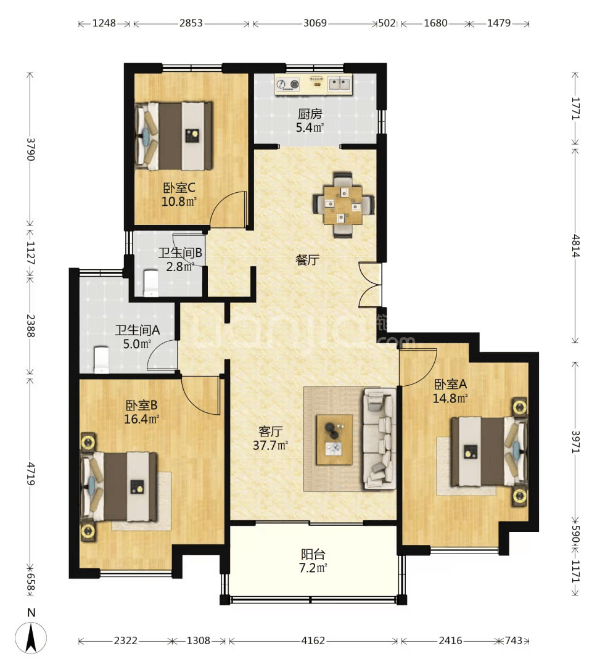 面积:128平米