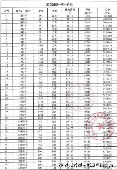 +一房一价表