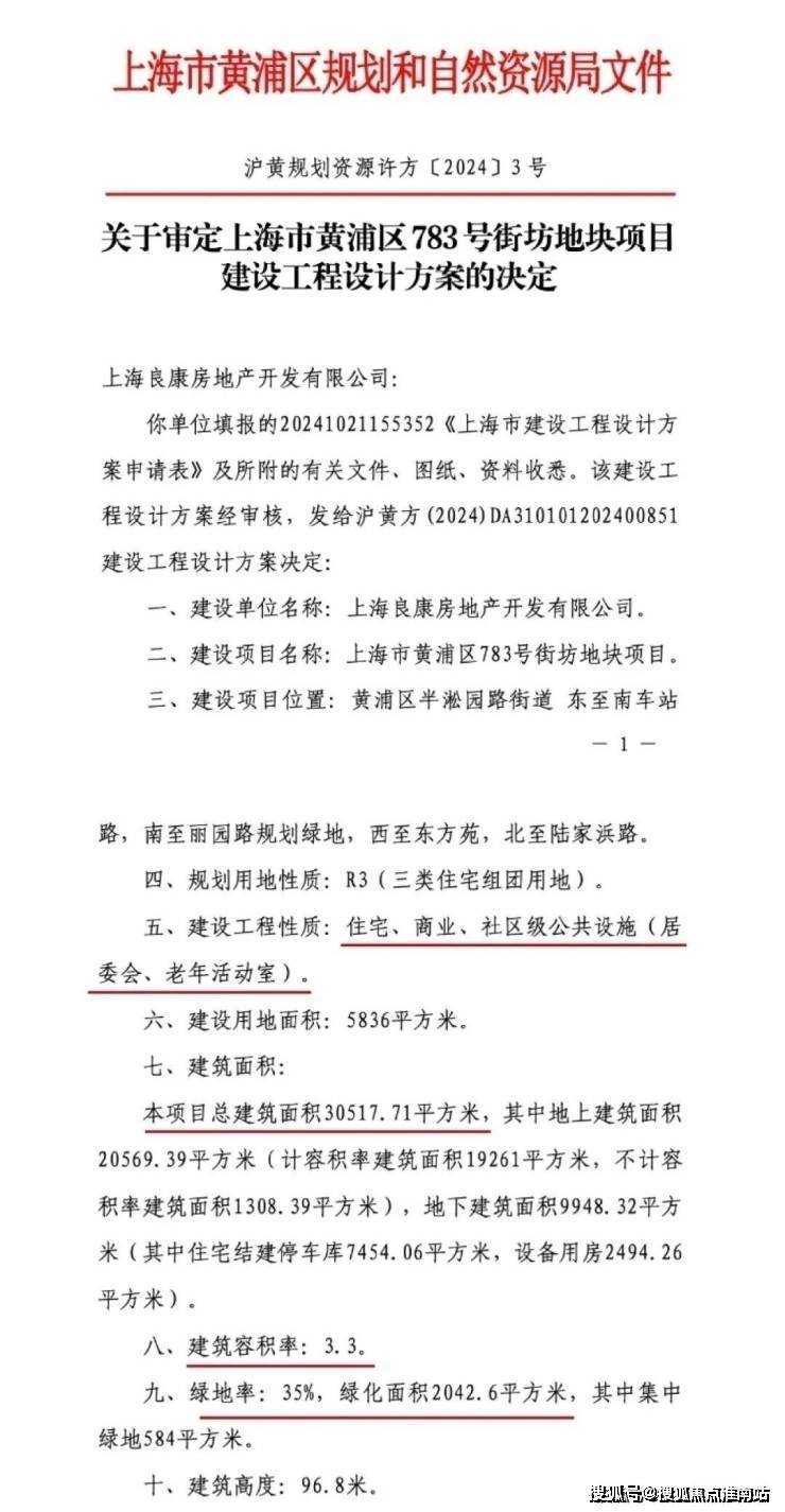 根据规划显示,783号街坊地块项目,总建筑面积30517.71㎡,容积率为3.3,绿化率为35%,绿化面积2042.6㎡。