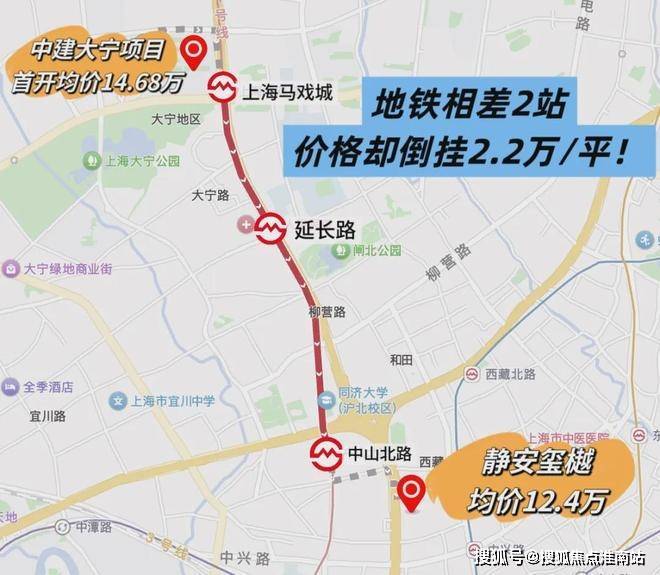 仔细看就会发现,位于静安大宁的中建项目,首开均价是14.68万/㎡,而位于静安内环上游2站的静安玺樾,此次均价却只有12.4万/㎡,反而便宜约2.2万/㎡,已经形成了明显的地段与房价的倒挂!