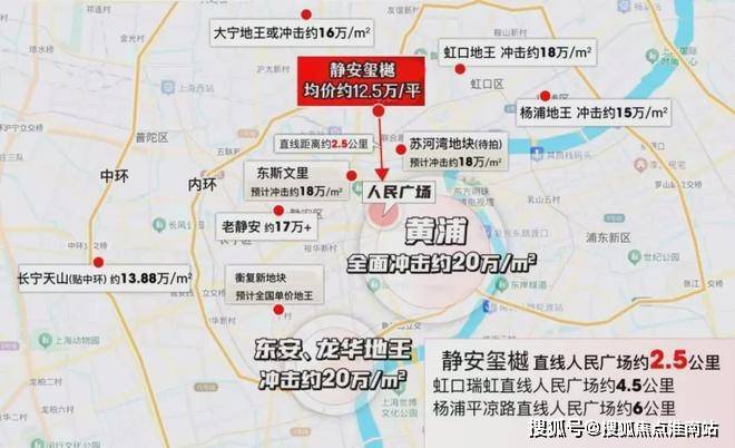 静安玺樾在上海中轴线之上,直线距离人民广场约2.5公里,与静安寺相距人广距离类似。比虹口、杨浦等区域更靠近传统市中心,在同价位段新房中位置更出众