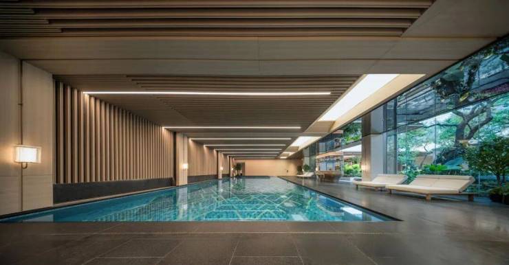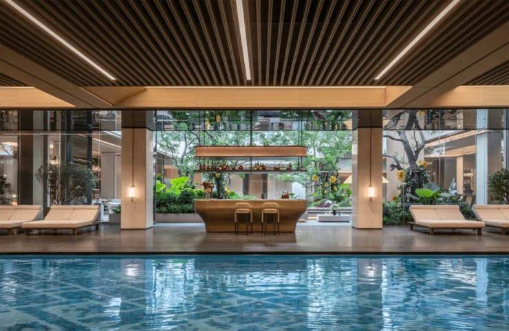 社区大堂极具仪式感,未来会采用地下会所设计,会所沿着下沉庭院四周展开,满足业主日常娱乐需求,也与其他竞品做出差异化。