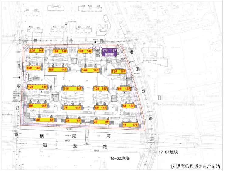 17-07地块:占地面积约2.76万方,总建筑面积约10.96万方,容积率2.5, 拟建6栋18F高层住宅、1栋18F保障房、1栋14F酒店、3栋2-3F商业以及若干配套用房!