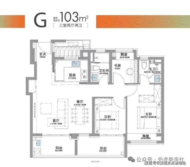 “南向双阳台+南北双飘窗”,构筑真3房户型!