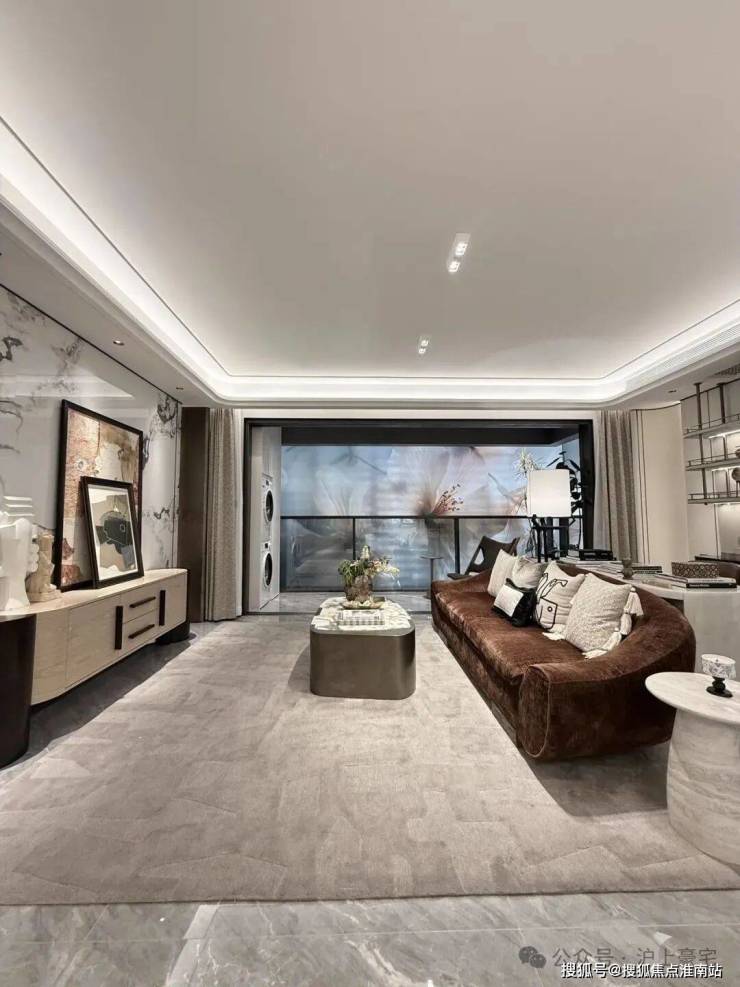 进到实地约99平样板房,整个玄关柜几乎全部都是皮质缝线包裹,细节拉满;