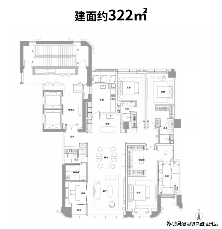 以建面约322户型为例: