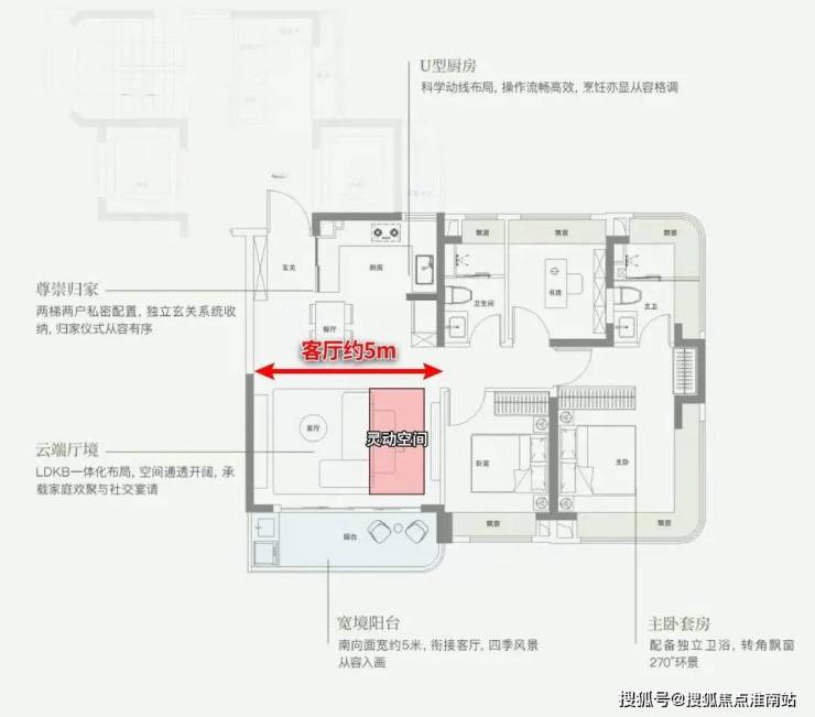 除了 约9.8米的跑道阳台4+1室的格局约270°的IMAX超级采光面 外,这个户型拥有两个最独特的优势: