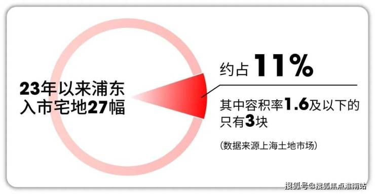 据上海土地官网显示,2023年至今整个浦东入市宅地27块, 其中容积率1.6及以下的只有3块,占比仅约11% ,其中之一就是金海雲墅。
