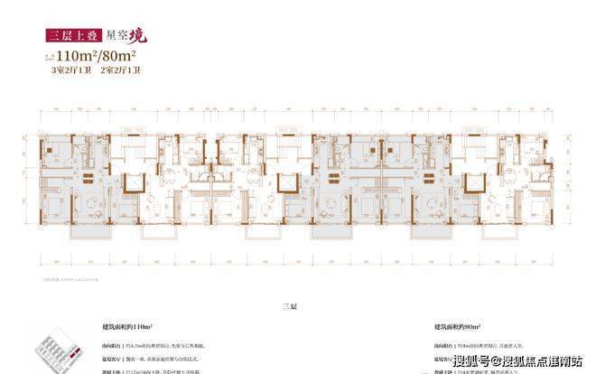 建面约110㎡3房2厅2卫/80㎡2房2厅2卫(三层上叠):