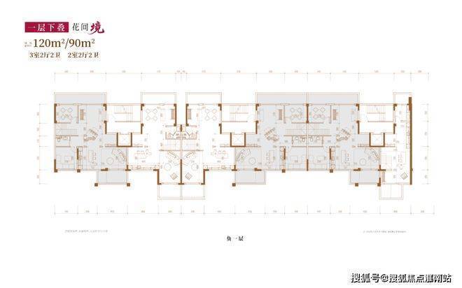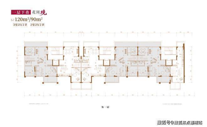 建面约120㎡3房2厅2卫/90㎡2房2厅2卫(一层下叠):