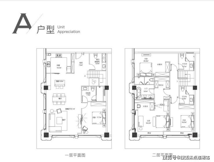 A户型:180度全景采光,超大尺度一体客餐厅,奢阔主卧。