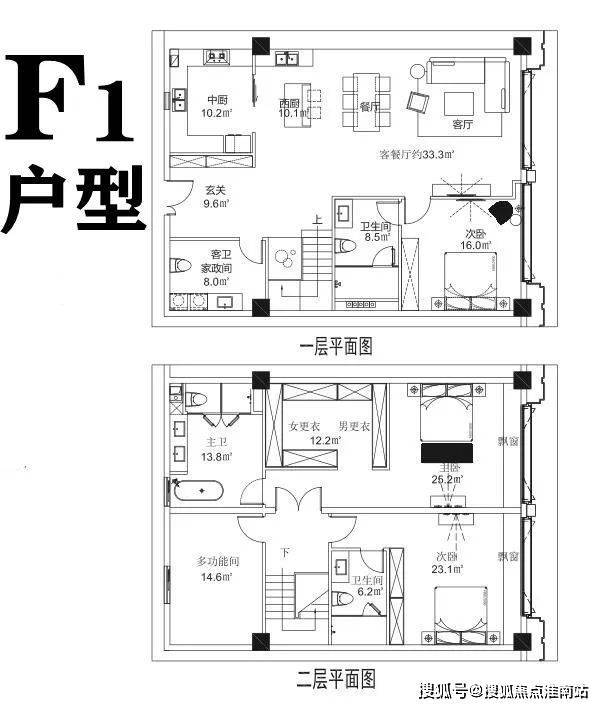 F户型:三套房、中西厨、奢阔主卧带大衣帽间